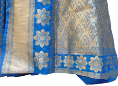 Blue & Cream Designer Bridal Hand Weaven Pure Benarasi Zari Work Saree Sari With Blouse