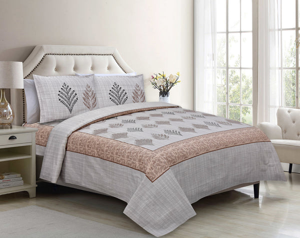 Grey Pure Cotton Double Bed Printed Bedsheet
