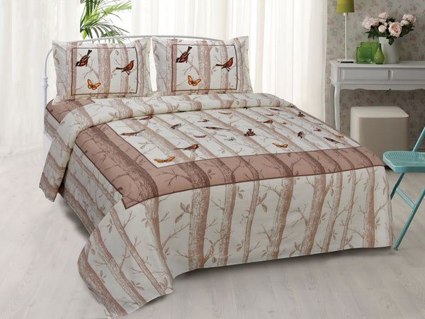 Off White Pure Cotton Double Bed Printed Bedsheet