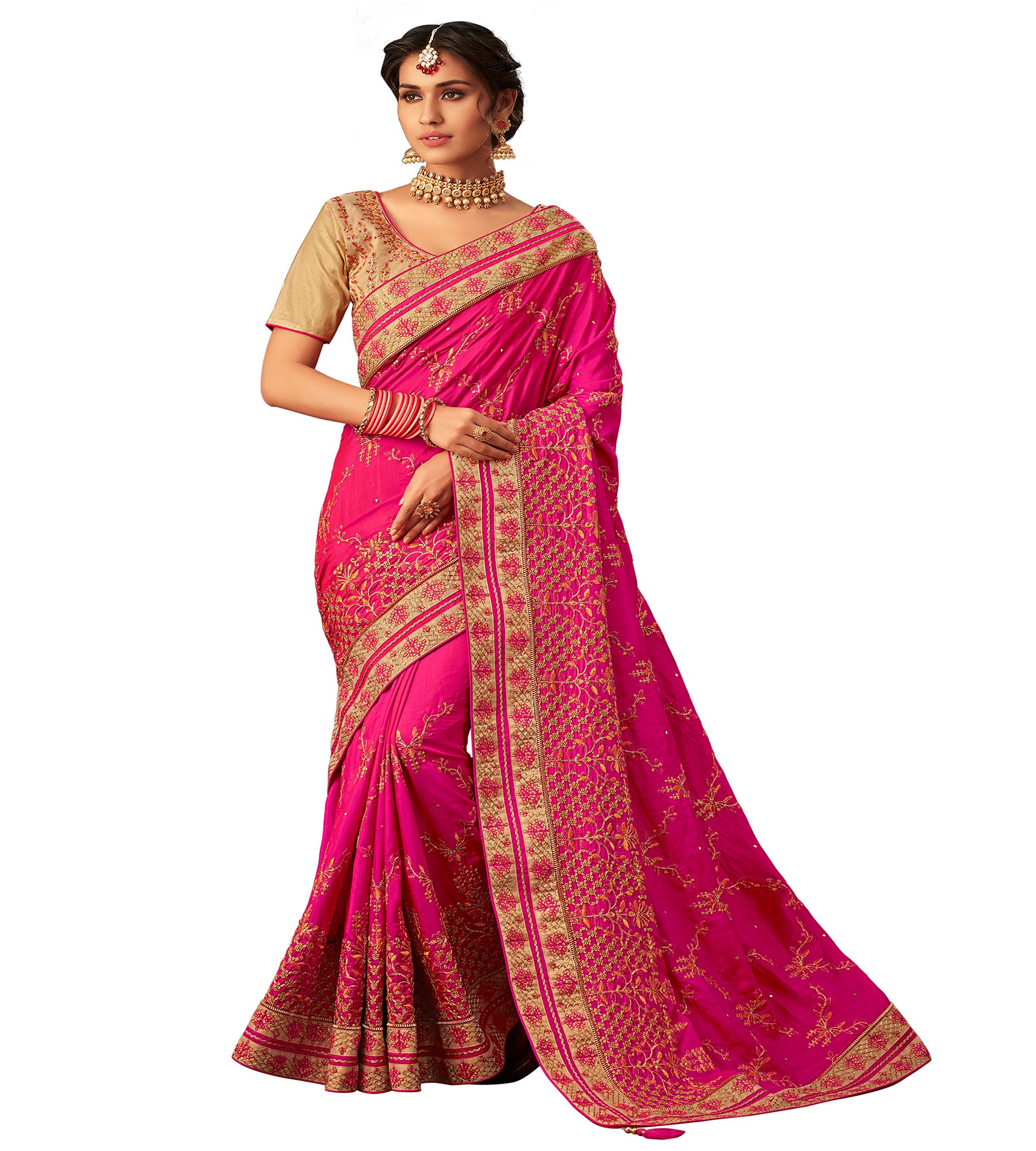 SMSAREE Presents This Pink Color Poly Silk Fancy Designer Saree Which Make Dynamic Appearance In Any Occasions With Stunning And Beautiful Look Made From Poly Silk with Full Embroidery. It's a Poly Silk Full Embroidered Fancy Designer Saree with Raw Silk Blouse. This Saree Is Quite Comfortable To Wear And Easy To Drape As Well.